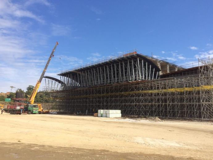 Sucoot provide 5 sets system formwork which combines Sucoots p60.2mm Shoring scaffolding, Top beam and Base beam to adopt 5 pier tables allows separate operation areas. These formwork systems are strong and tight therefore they can be easily move by trailer truck, to reduce drop mold time and demolding time. The expect duration was down from 7 months to 4-5 months, save up to 30% working time.