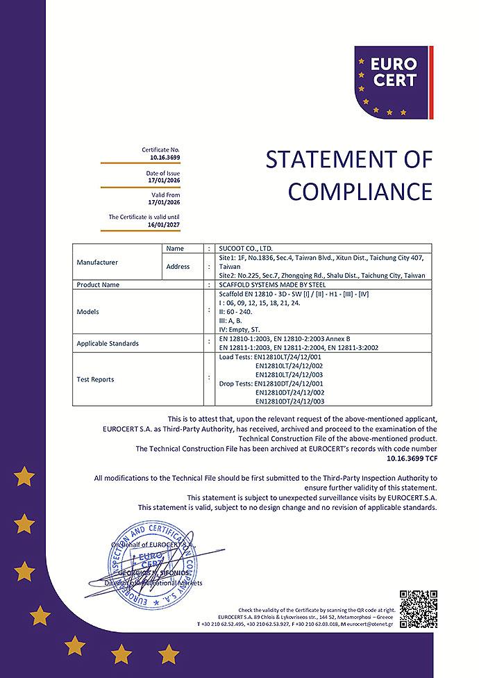 We are known as the first and the only company in Taiwan to obtain EN-12810-1.