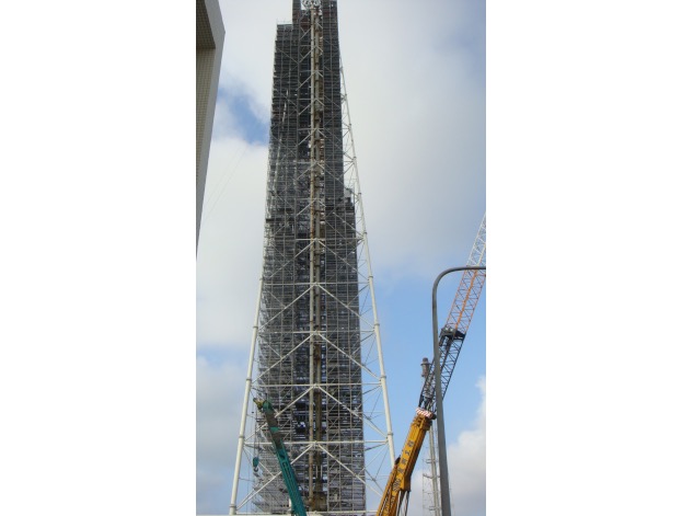 Applied Sucoot’s Ring Lock Scaffolding System, which can be flexibly adjusted to fit curved geometries.