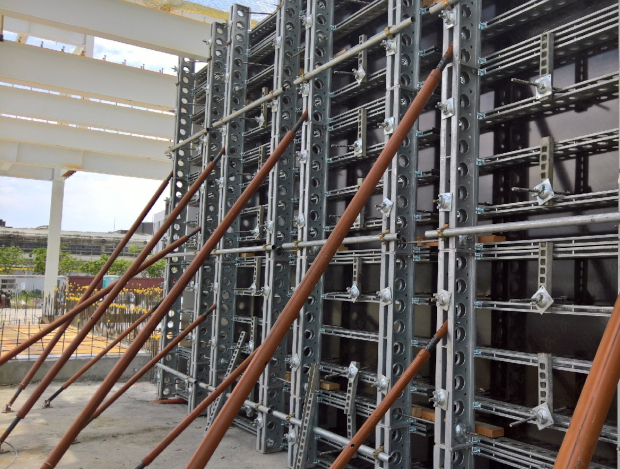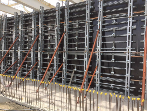 Employed Sucoot’s double-sided wall formwork with tie rods and struts for precise alignment and strength.