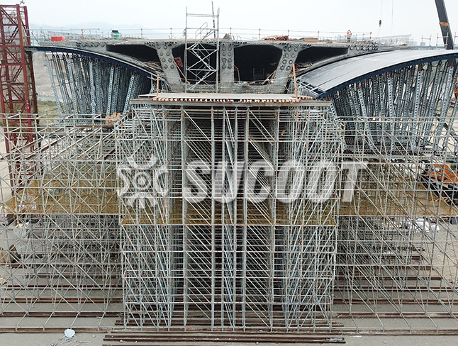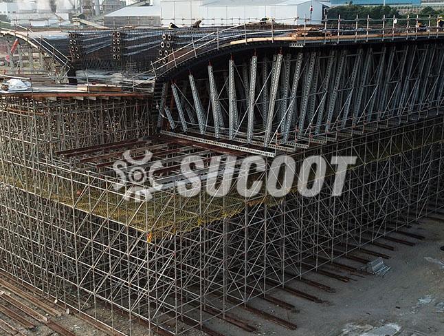 Haikou city is one of the ten pilot cities to start the structure. The goal was to build a total length of 43.24 kilo underground culvert within 3 years. Among various box culvert methods such as traditional form type, TBM, etc., Sucoot was selected and participated in the cast-in-situ project. The client demands to build as the whole culvert as the wall and ceiling together plus without tie rods. As solution Sucoot provide Mobile Formwork System, mainly it’s the combination of Top Beam, Base Beam, and Ring System Scaffolding. It can be easily down mold, demolding and move away by man push on the wheel.