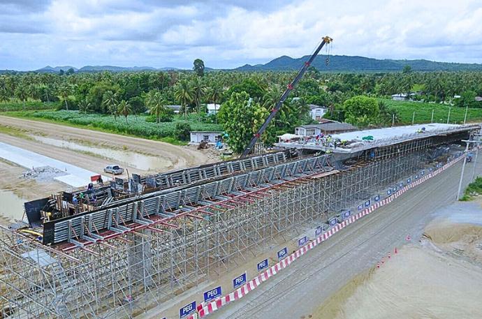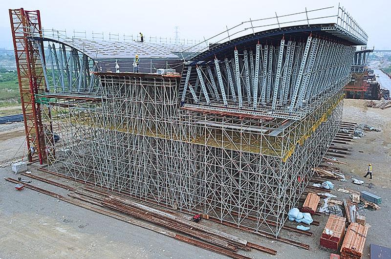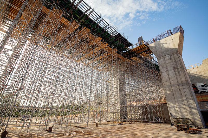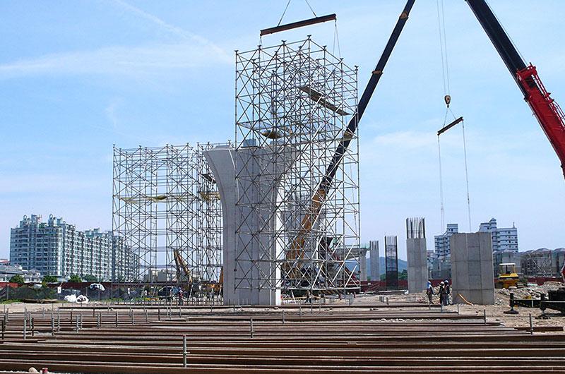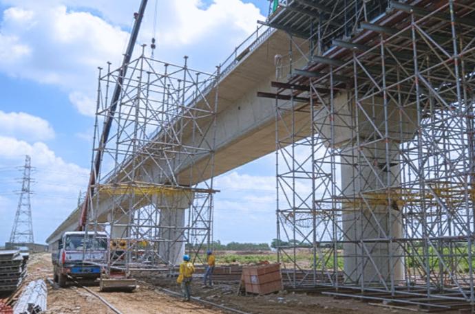 Bridges, viaducts, box culverts, stations, and retaining walls all demand far greater height, span, and load capacity than typical buildings. During construction, large volumes of rebar and concrete create enormous structural loads that require powerful temporary shoring.