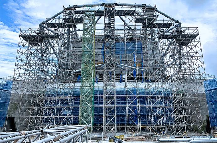 Sucoot’s design team engineered scaffolding that fit seamlessly around the contours without touching the structure — enabling the crew to complete the restoration work safely and efficiently.