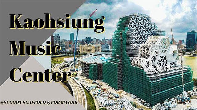 Inspired by ocean waves, the Kaohsiung Maritime Cultural & Popular Music Center features a highly irregular steel structure with multiple suspended sections, creating major challenges for scaffold planning and erection.