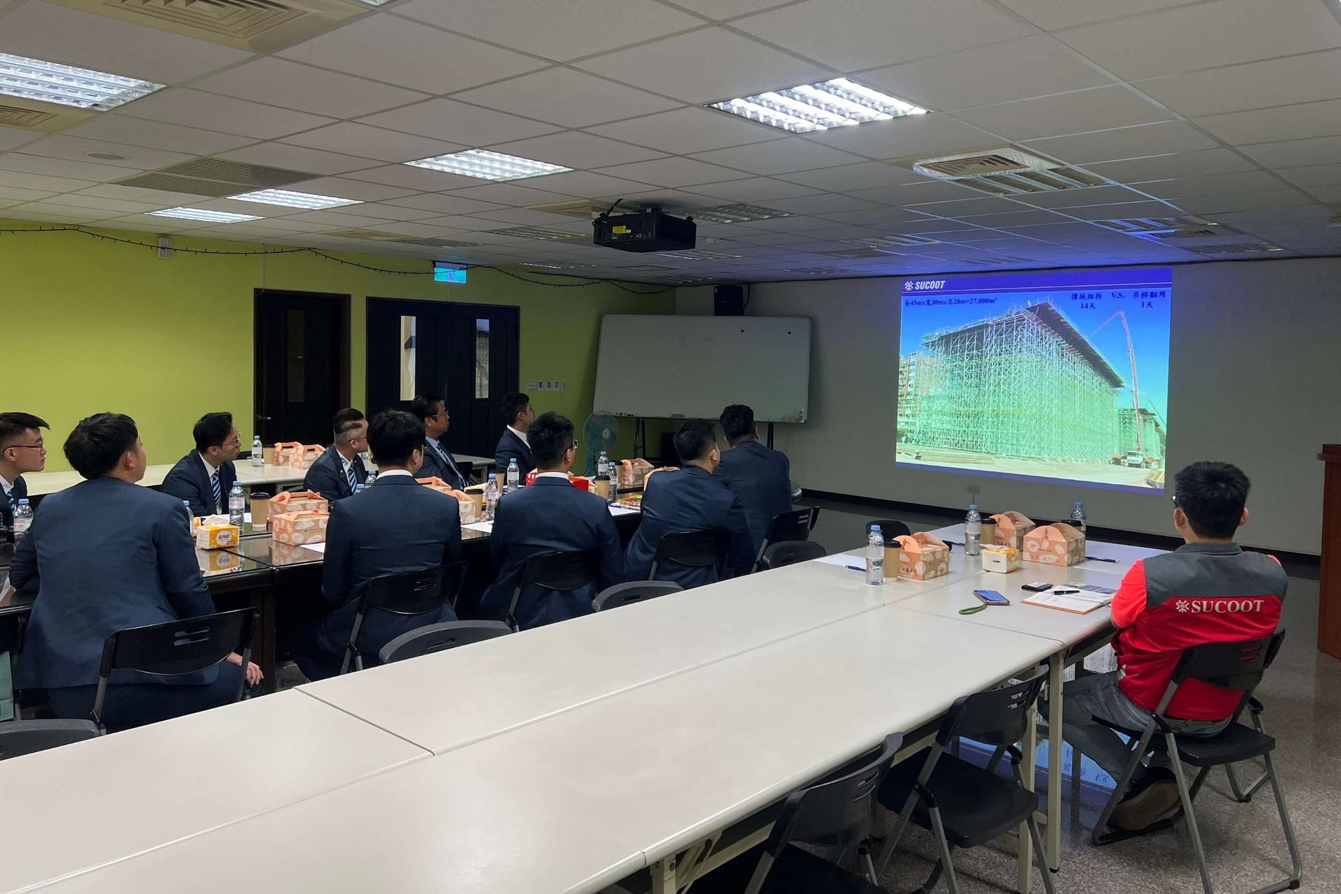 本次參訪活動中,實固團隊向來賓介紹公司自創立以來的成長軌跡,並分享在全球市場推廣圓盤系統®鷹架與模組化模板系統的實務經驗。透過實際案例說明,展示實固如何在 高科技廠房建設, 公共基礎建設,以及 各類大型工程中,提供兼具安全性與施工效率的工程解決方案。